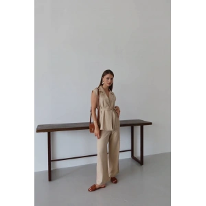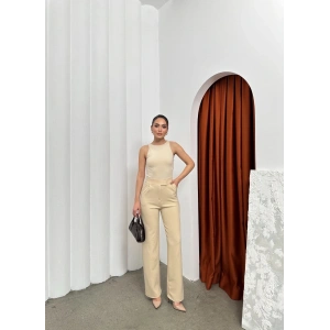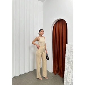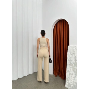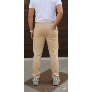 Erkek Üç iplik Kışlık Pamuklu Ovarsize Bağcıklı Düz Paça Cepli Eşofman Altı Spor Rahat Model - Bej