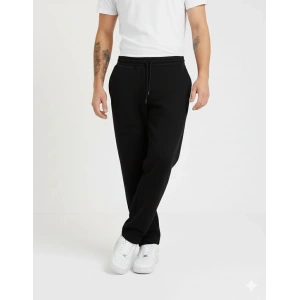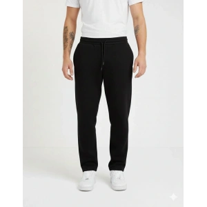 Erkek Üç iplik Kışlık Pamuklu Ovarsize Bağcıklı Düz Paça Cepli Eşofman Altı Spor Rahat Model - Siyah