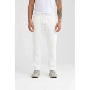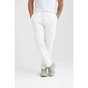 Erkek Üç iplik Kışlık Pamuklu Ovarsize Bağcıklı Düz Paça Cepli Eşofman Altı Spor Rahat Model - Beyaz