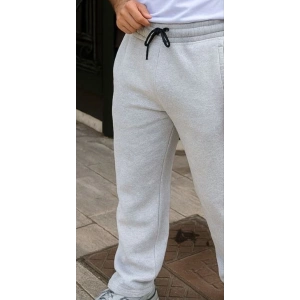 Erkek Üç iplik Kışlık Pamuklu Ovarsize Bağcıklı Düz Paça Cepli Eşofman Altı Spor Rahat Model - Gri
