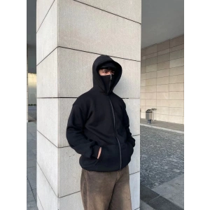 Samuray Ninja Çift Kapşonlu ZIP Fermuarlı Kanguru Çepli Tam Fermuarlı Hoodie Swetshirt - Siyah