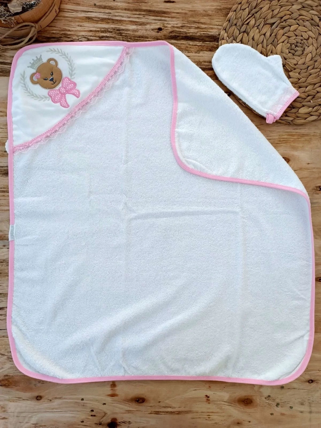 0-1 Yaş Bear Nakışlı Pareolu 4lü Kız Bebek Havlu Silgi Takımı Pembe