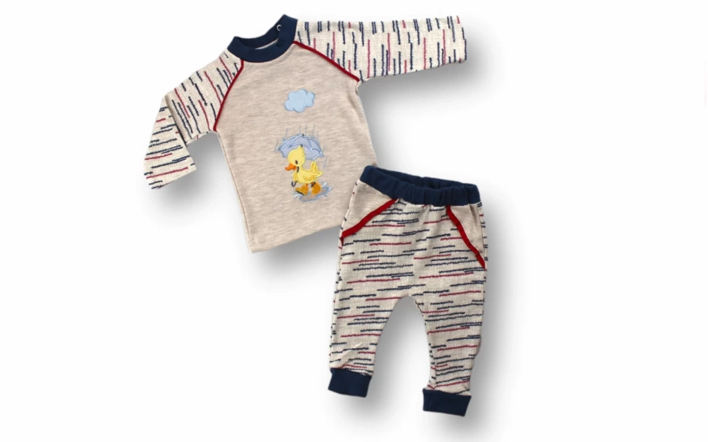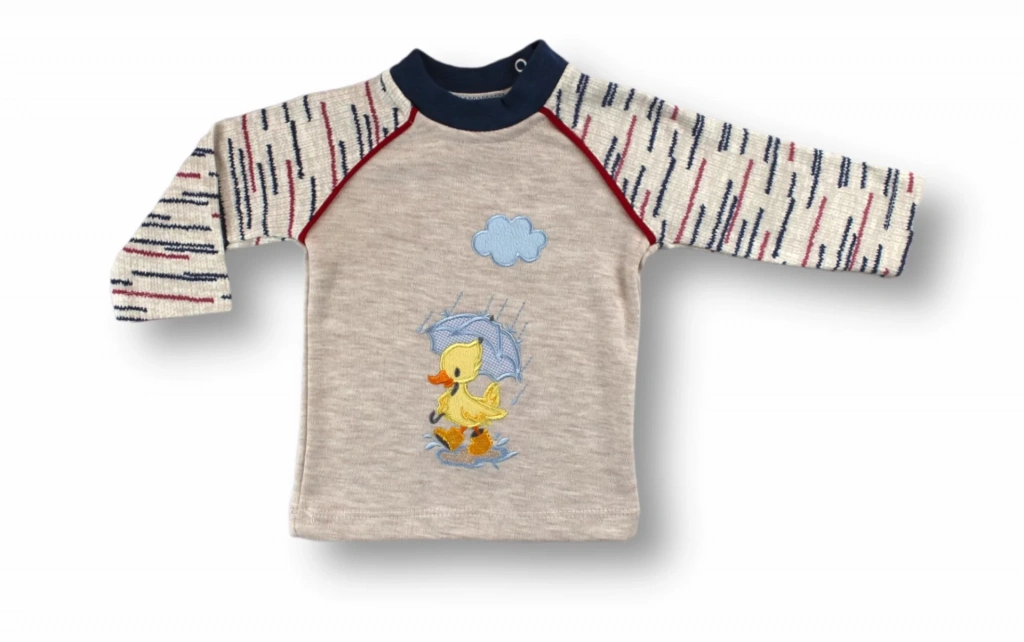 0-3 3-6 6-9 Ay Şemsiyeli Ördek Nakışlı Uzun Kollu Sweatli 2li Kız-erkek Bebek Takımı Mavi