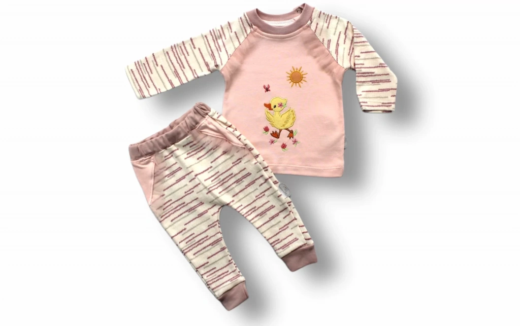 0-3 3-6 6-9 Ay Süslü Ördek Nakışlı Uzun Kollu Sweatli 2li Kız Bebek Takımı Pembe