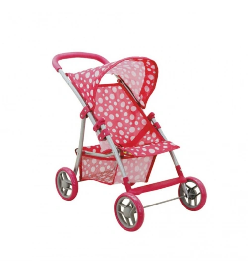 0664 Puantiye Desenli, 4 Tekerlekli ve Tenteli Oyuncak Puset - NessiWorldman