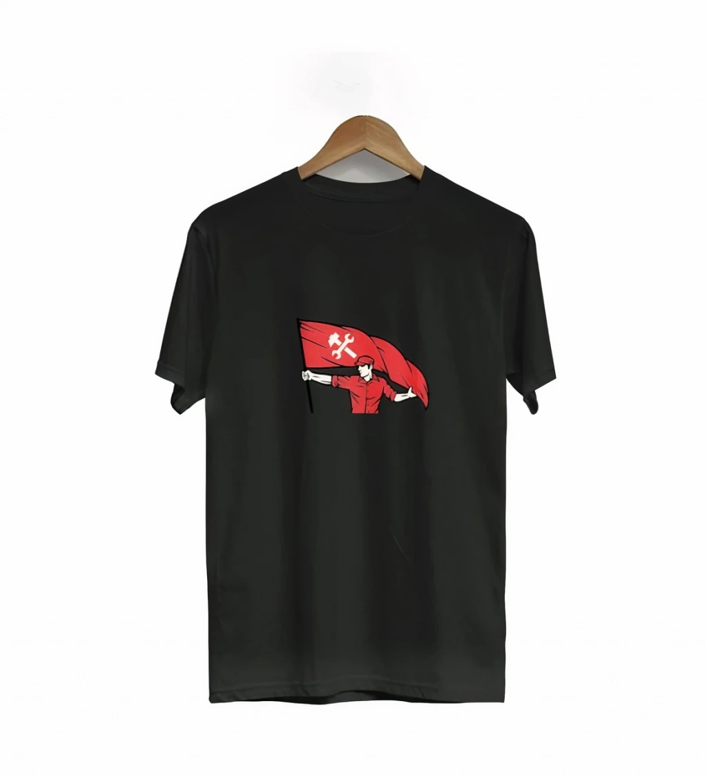 1 Mayıs Emekçilerimiz İçin Özel Tasarım Bayraklı Emekçi Baskılı T-shirt - Siyah