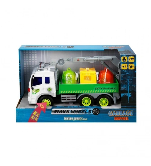 13078 1:16 Maxx Wheels Sesli ve Işıklı Geri Dönüşüm Kamyonları