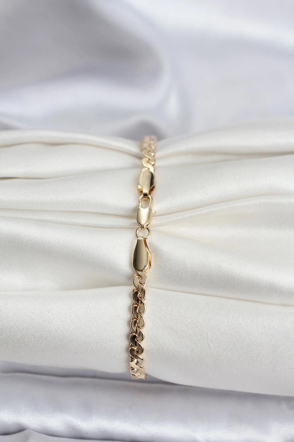 14k Gold Renk Kaplama Ezme Yılan Zincir Model Cm Kadın Bileklik