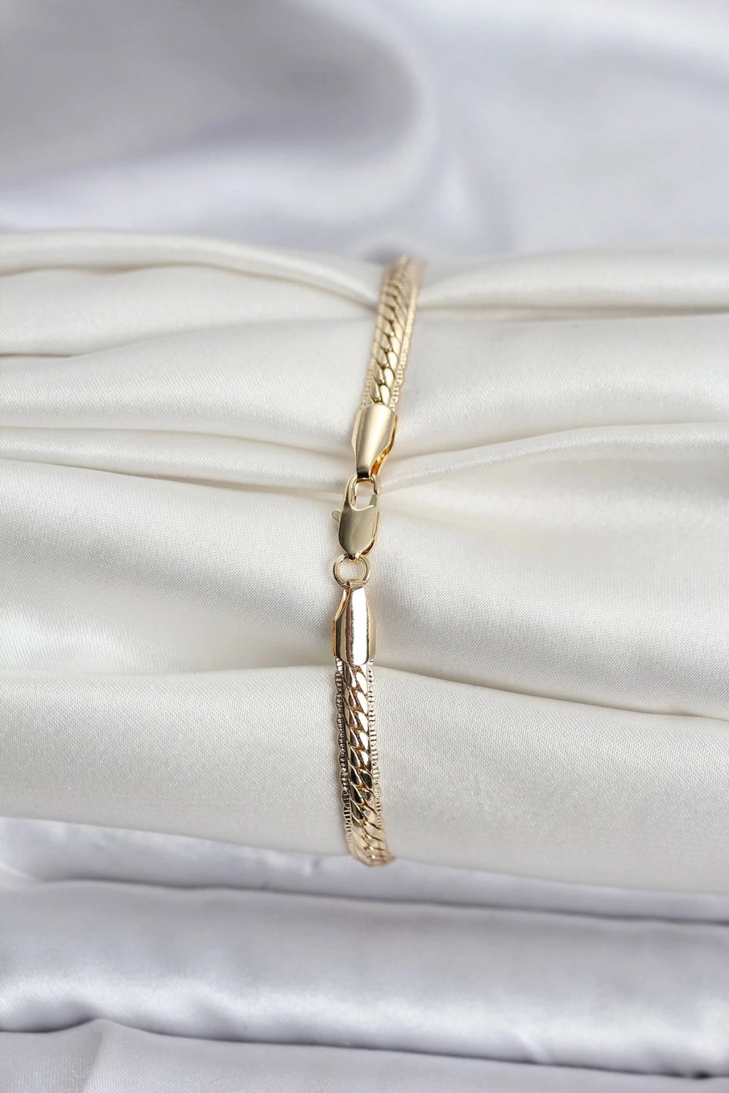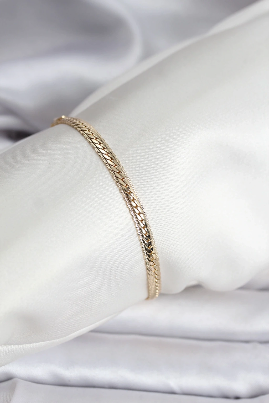 14k Gold Renk Kaplama Lazer Ezme Zincir Model Cm Kadın Bileklik