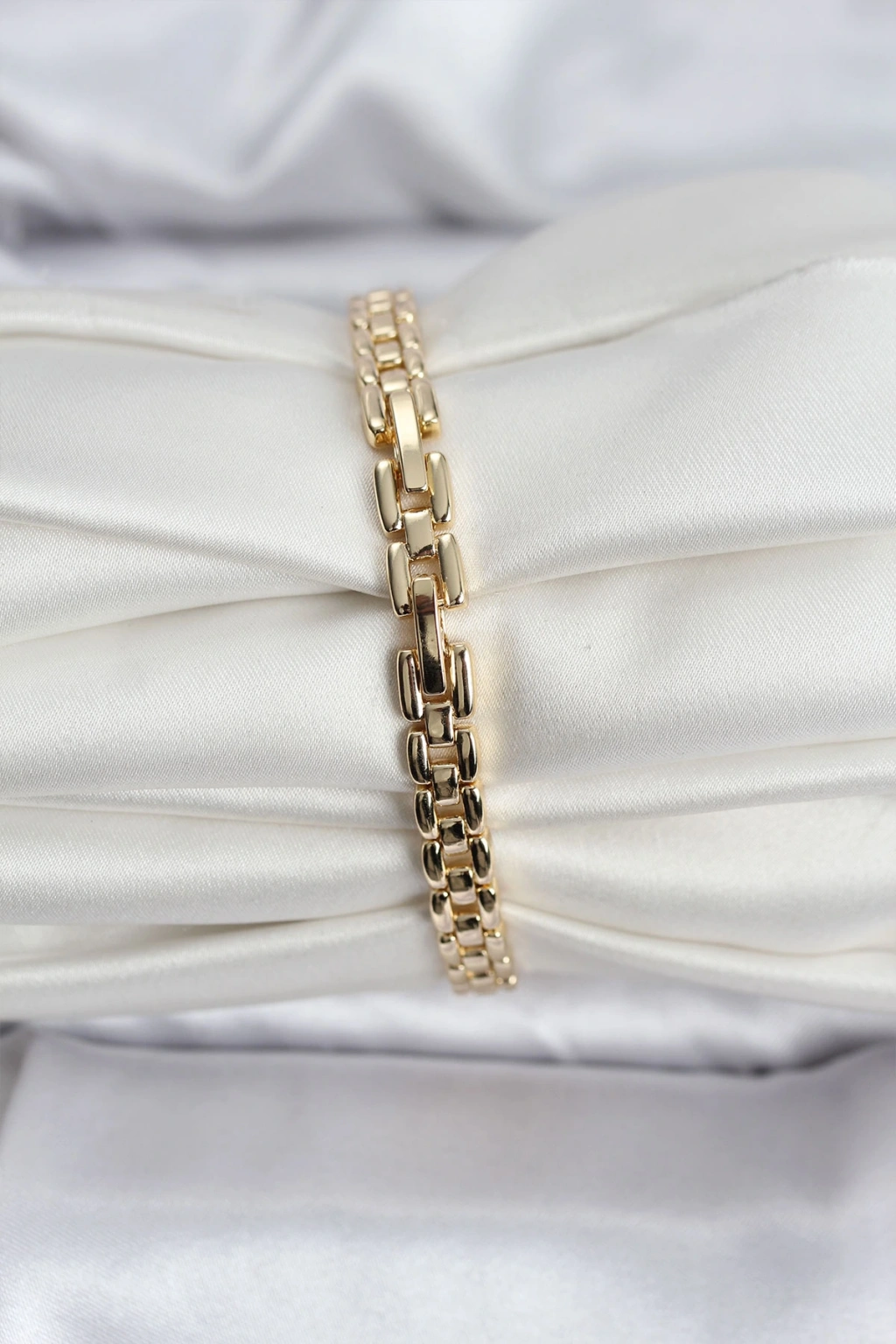 14k Gold Renk Kaplama Zirkon Kare Taşlı Cm Kadın Bileklik