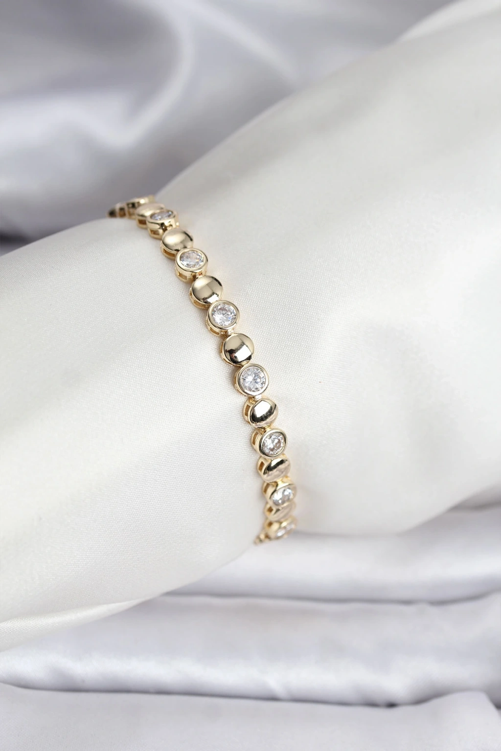 14k Gold Renk Kaplama Zirkon Taşlı Cm Kadın Bileklik