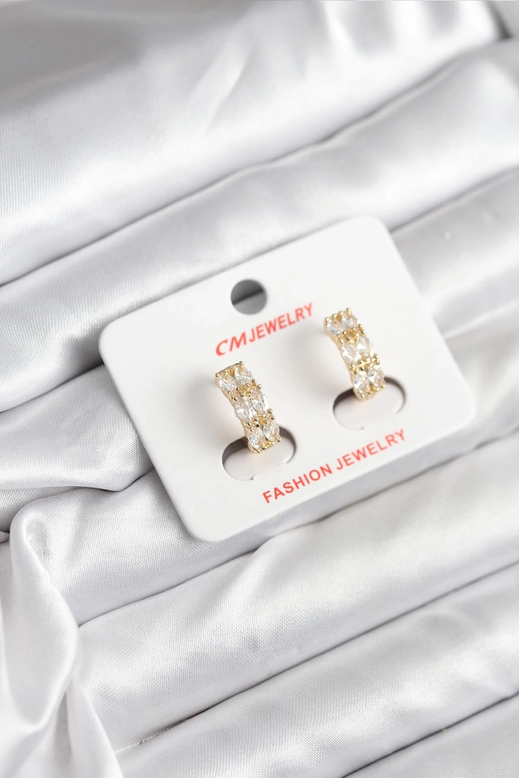14K Gold Renk Kaplama Zirkon Taşlı CM Kadın Küpe