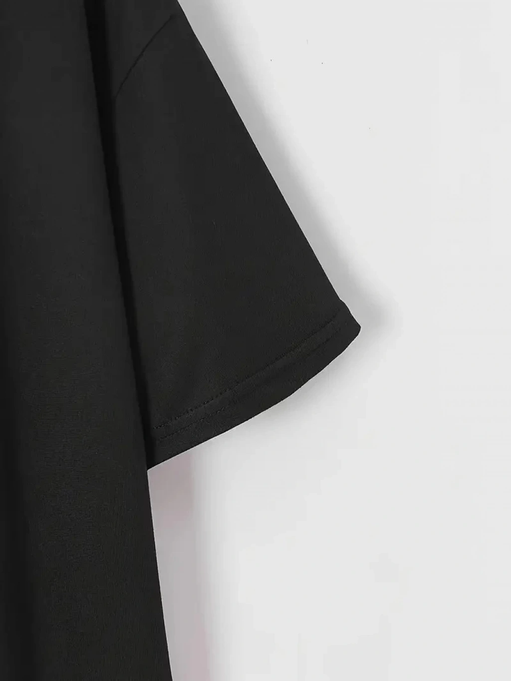 GENİŞ KESİM PAMUKLU TİŞÖRT - "GANDHI THE PROJECT" BASKILI, SİYAH, RAHAT KESİM, KISA KOLLU, GÜNLÜK KIYAFET, HER GÜN GİYİLEBİLECEK TİŞÖRT- SİYAH