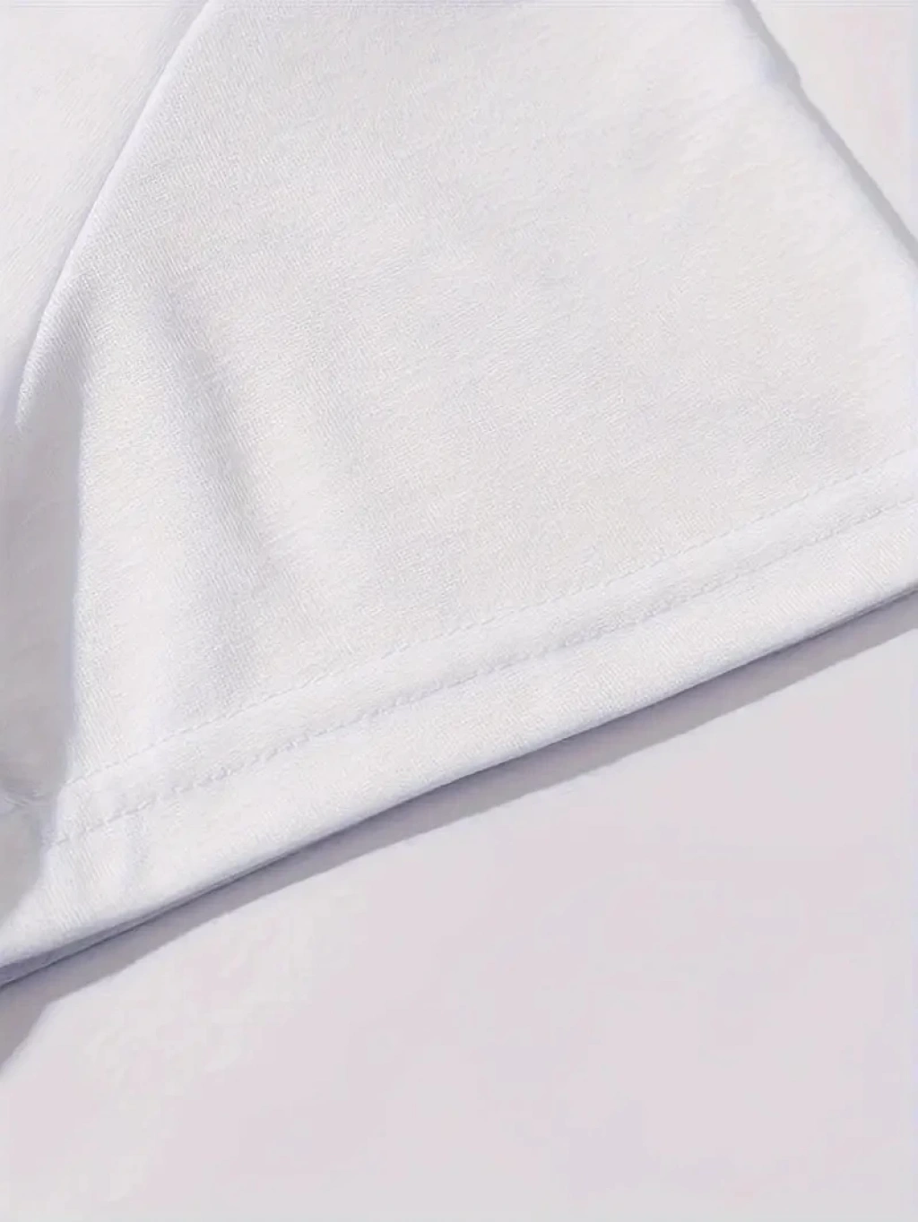 Rahat Bisiklet Yaka Tişört, Yaratıcı Karikatür Baskı - Yumuşak Polyester, Her Mevsim Giyilebilir- Beyaz