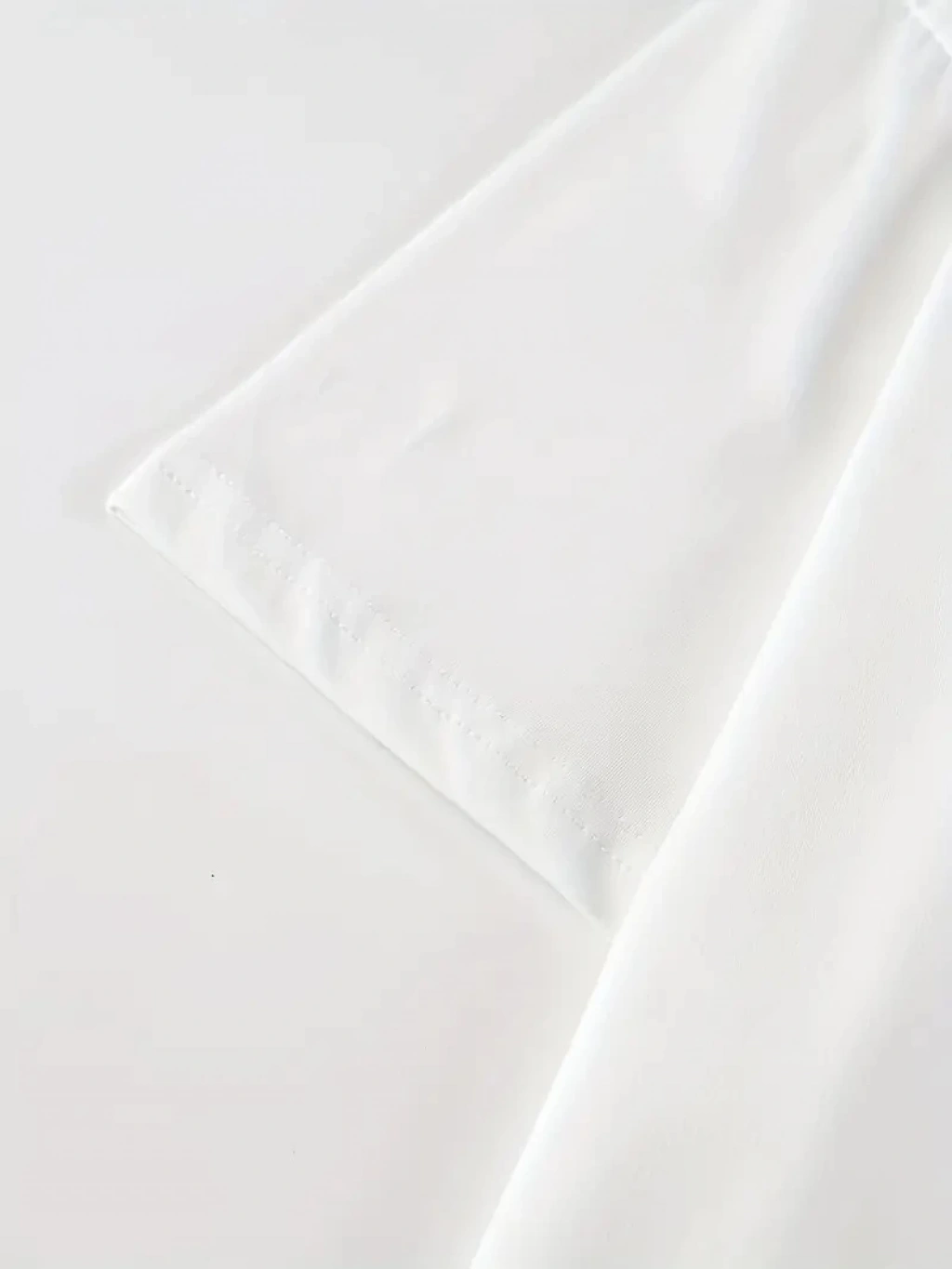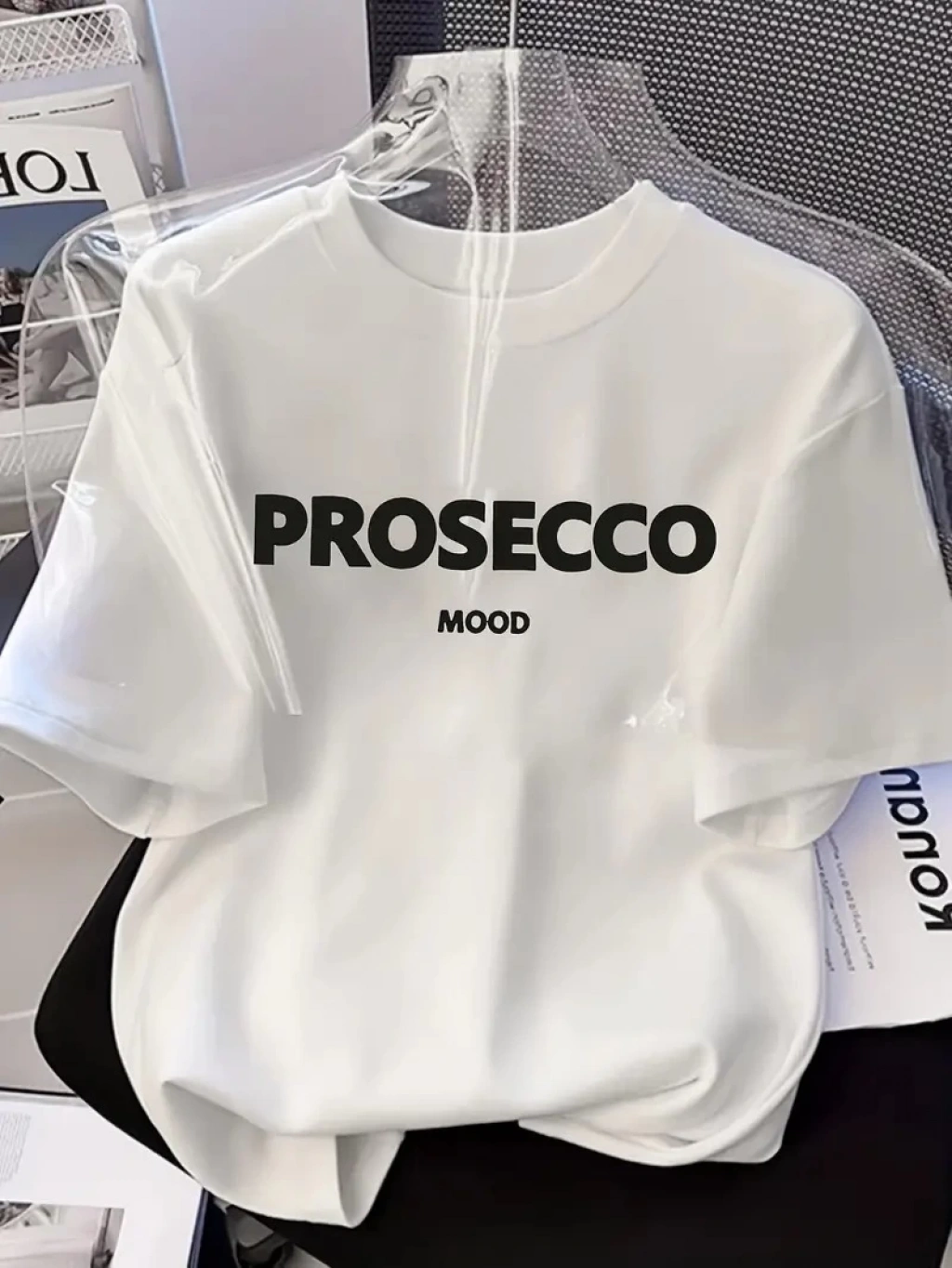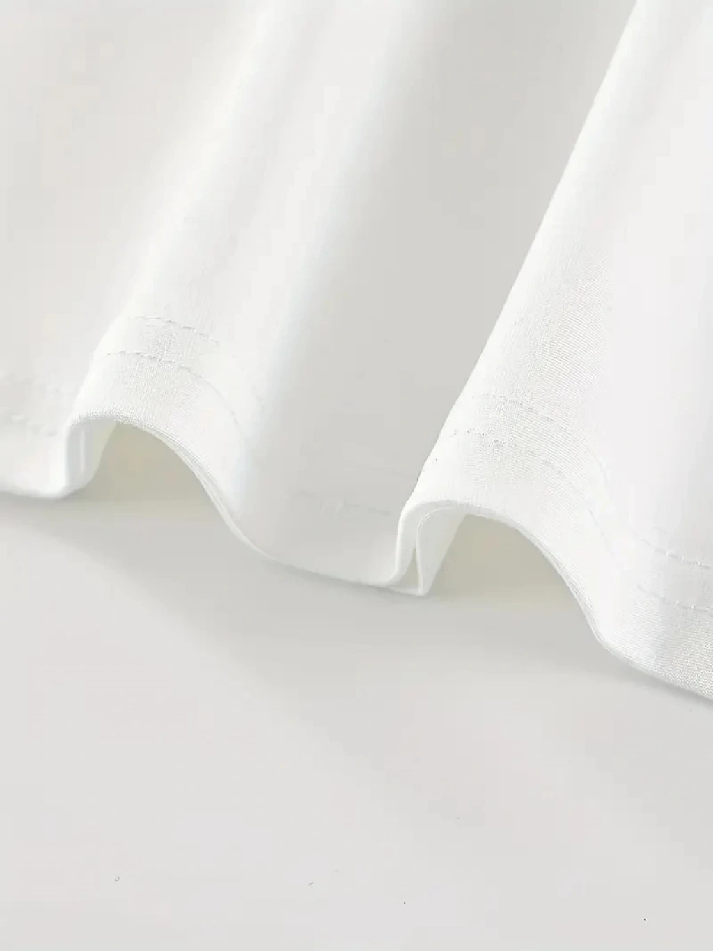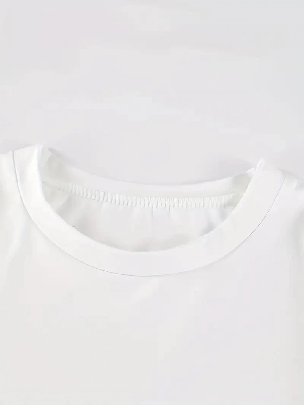 Rahat Bisiklet Yaka Tişört, Yaratıcı Karikatür Baskı - Yumuşak Polyester, Her Mevsim Giyilebilir- Beyaz