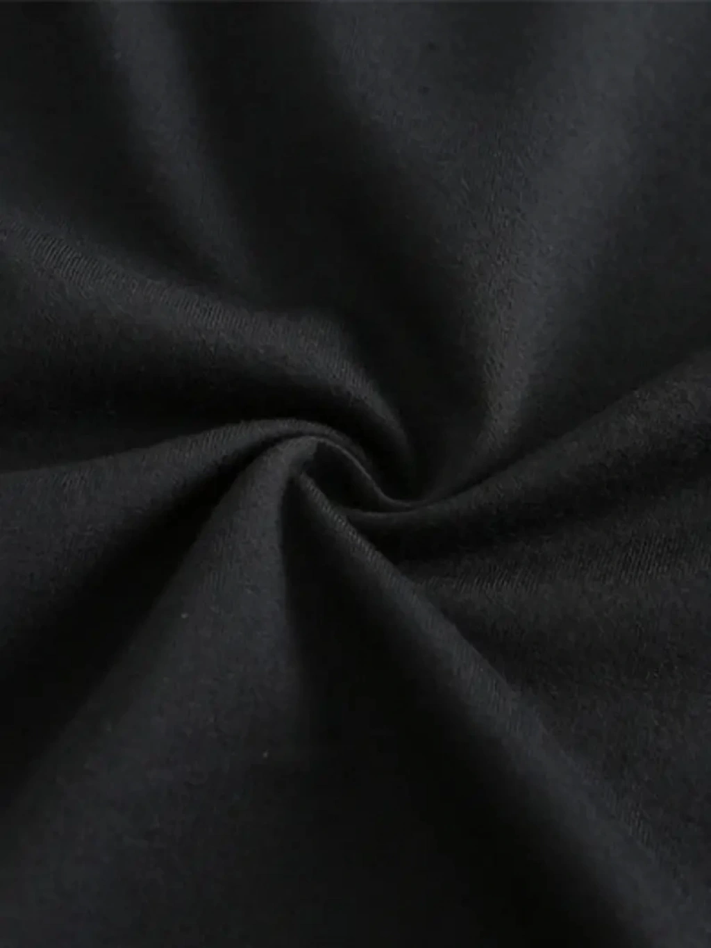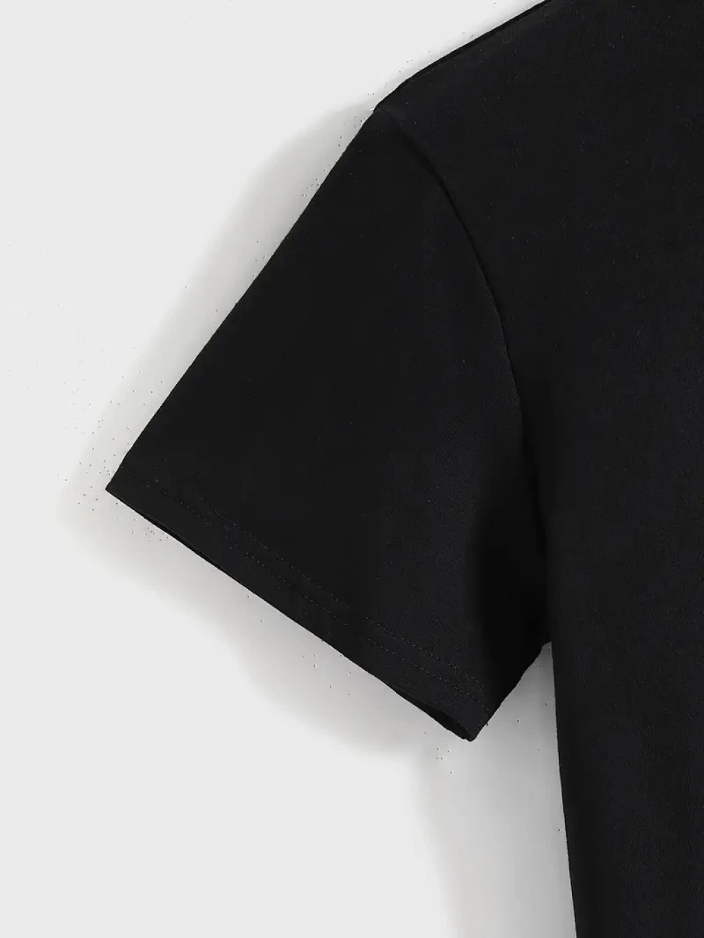 Rahat Bisiklet Yaka Tişört, Yaratıcı Karikatür Baskı - Yumuşak Polyester, Her Mevsim Giyilebilir- Siyah