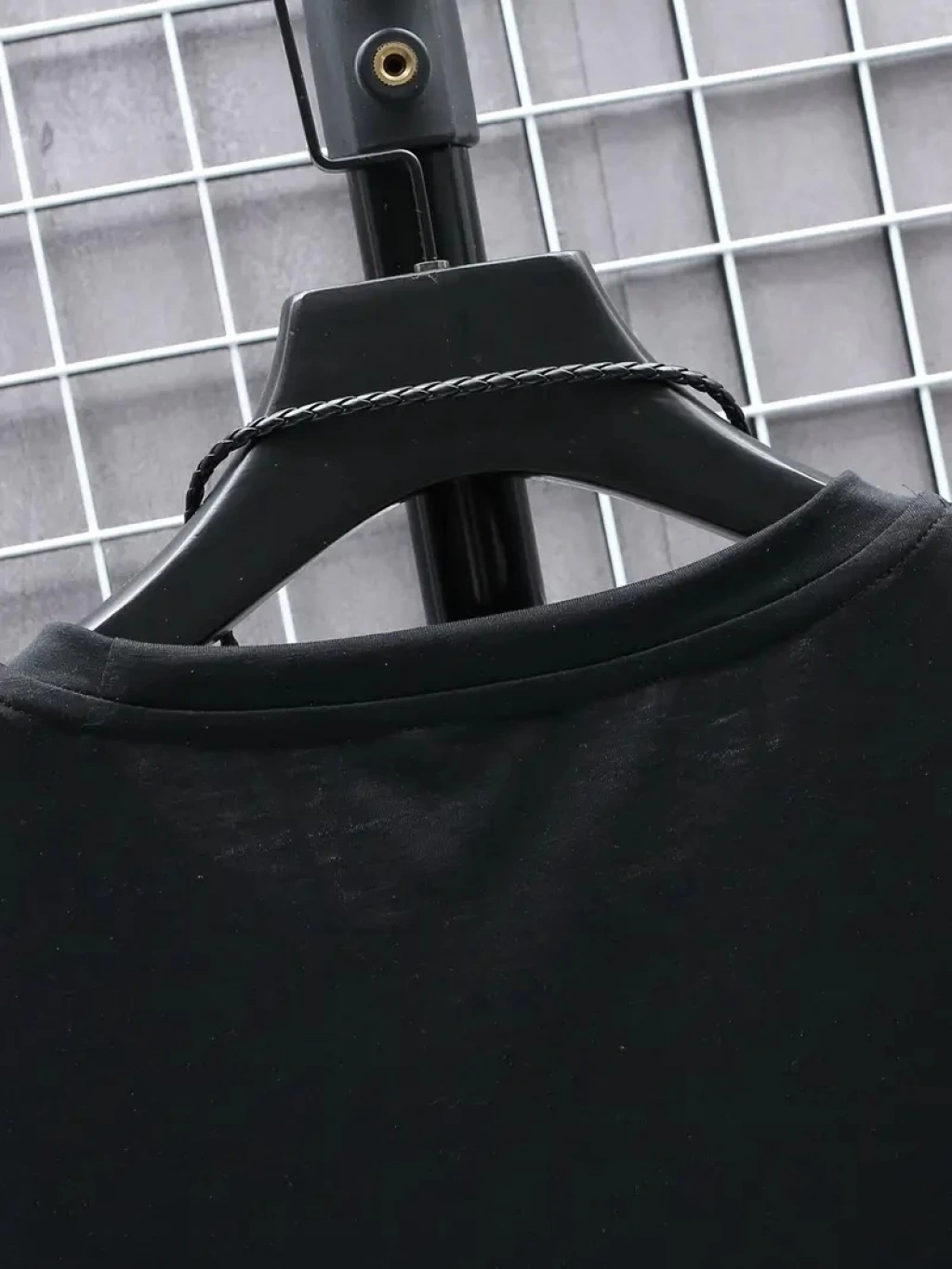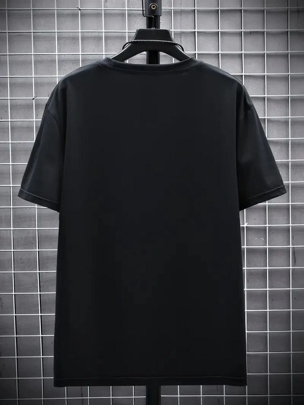 Benzersiz Sırt Baskılı Erkek Sokak Stili Bol Tişört - Nefes Alabilir Polyester, Makinede Yıkanabilir - Siyah