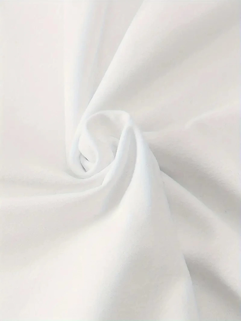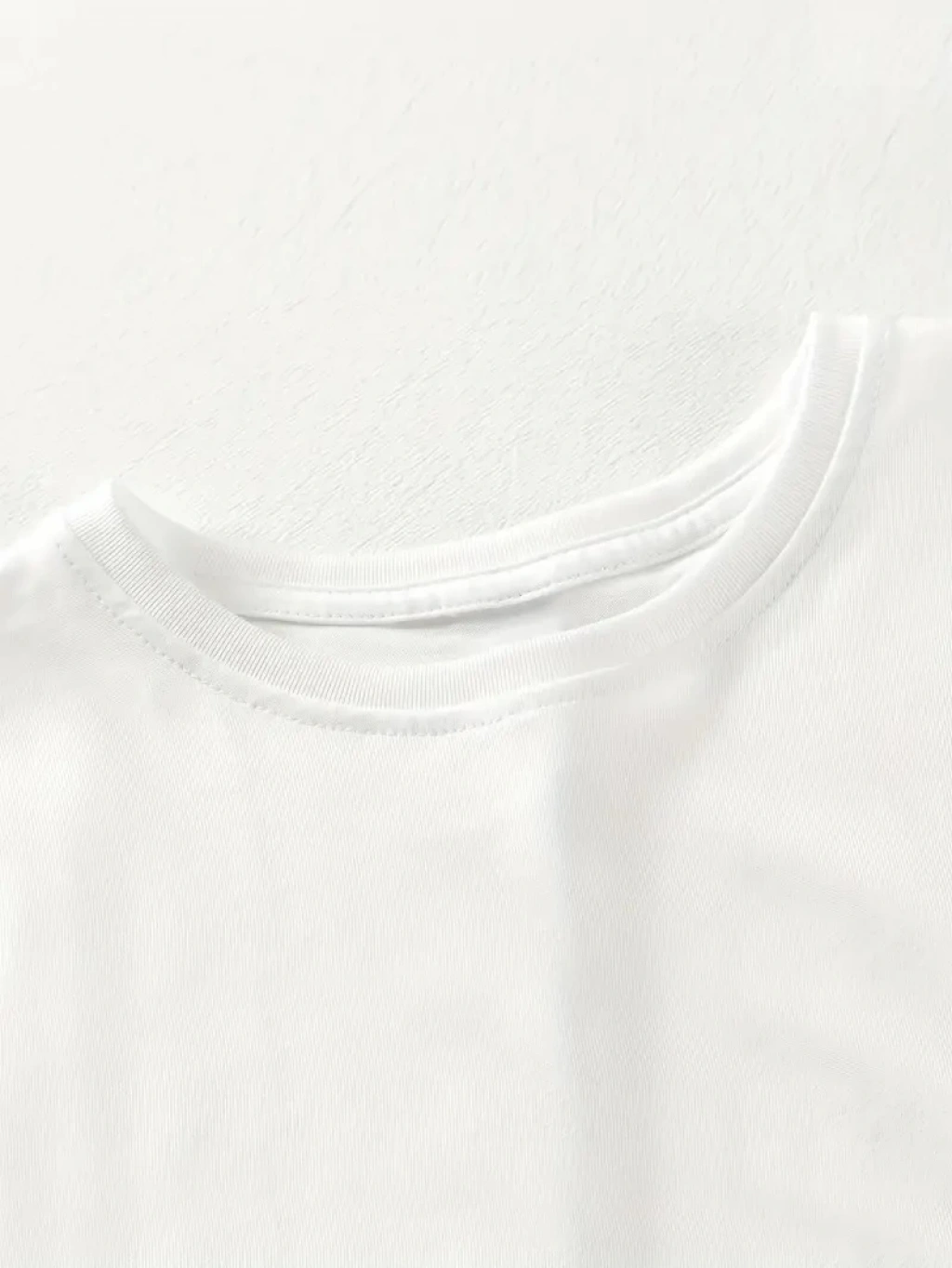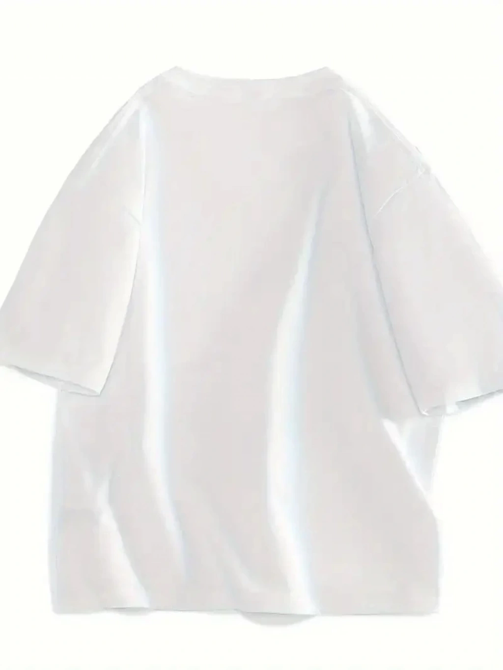 Rahat Bisiklet Yaka Tişört, Yaratıcı Karikatür Baskı - Yumuşak Polyester, Her Mevsim Giyilebilir- Beyaz