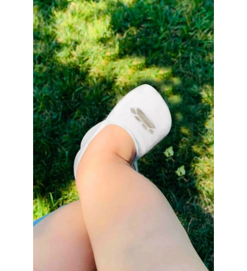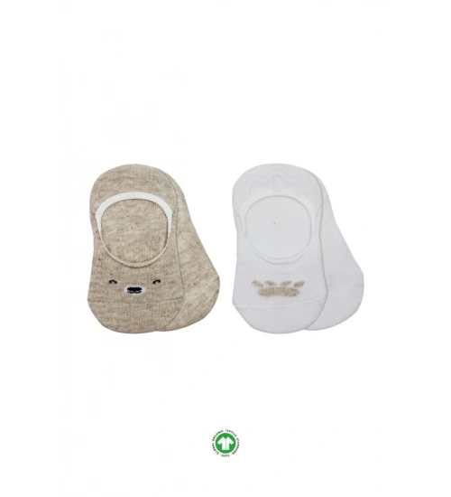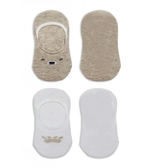 2'Li Babet Cute Face Penye Çorap 30103 Bej Beyaz