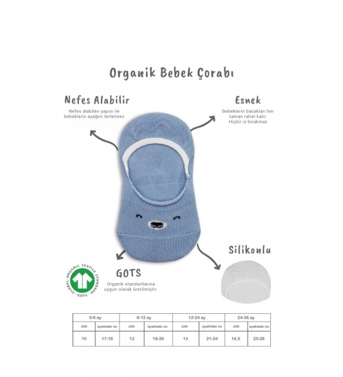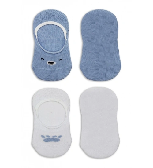 2'Li Babet Cute Face Penye Çorap 30103 Mavi-Beyaz