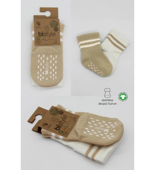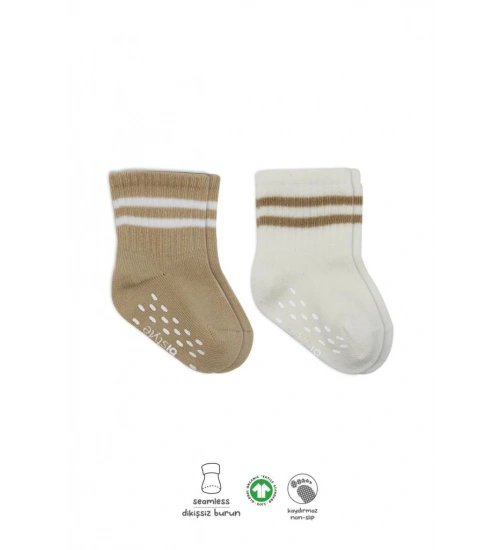 2'Li Çemberli Kaymaz Soket Çorap 10125 Bej-Ekru