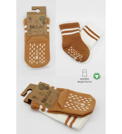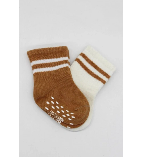 2'Li Çemberli Kaymaz Soket Çorap 10125 Ekru Hardal