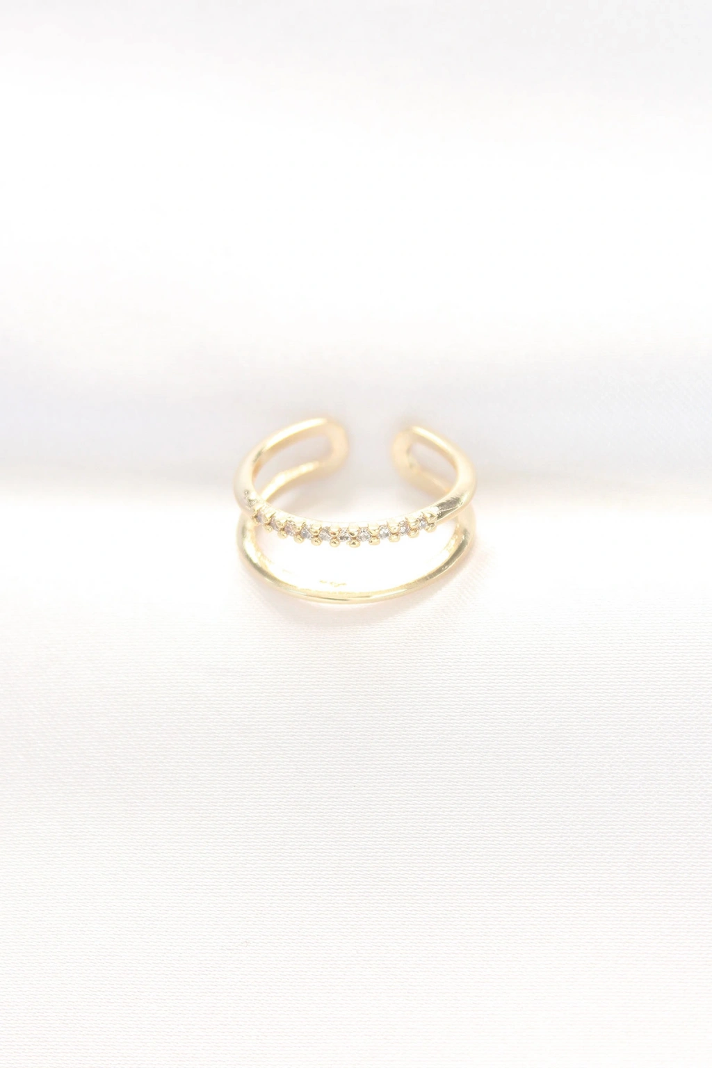 2li Görünümlü Su Yolu Tasarımlı Gold Renk Ayarlanabilir Yüzük