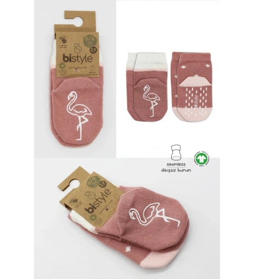 2'Li Hayvan Figür Kaymaz Kız Soket Çorap 10120 Pudra