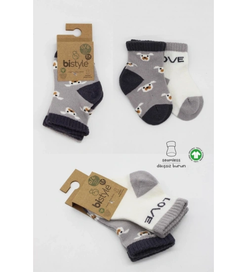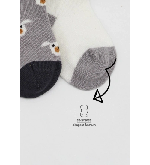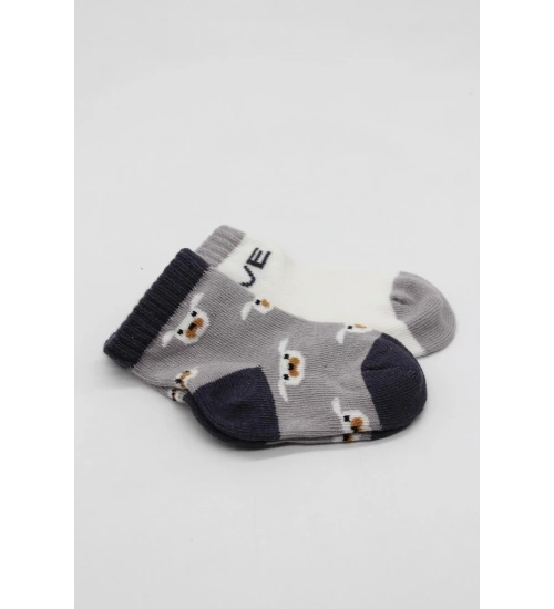 2'Li Love Dog Penye Soket Çorap 10118 Gri