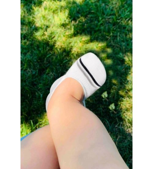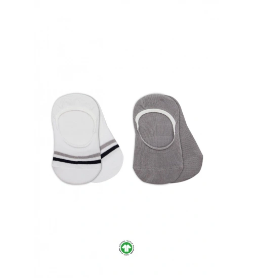 2'Li Penye Babet Silikon Çemberli Çorap 30102 Gri Beyaz