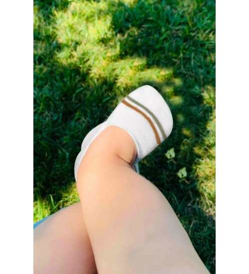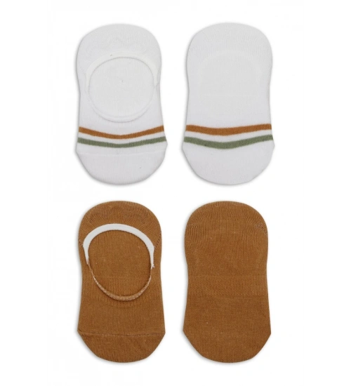 2'Li Penye Babet Silikon Çemberli Çorap 30102 Hardal Beyaz