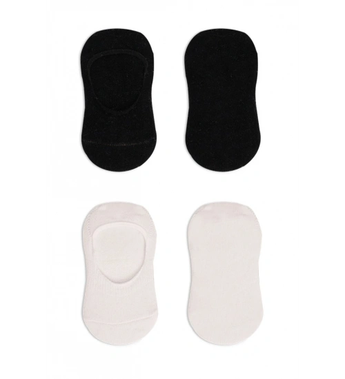 2'Li Penye Babet Silikonlu Basic Çorap 30104 Siyah Ekru