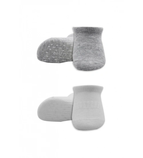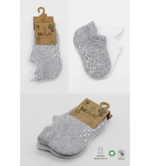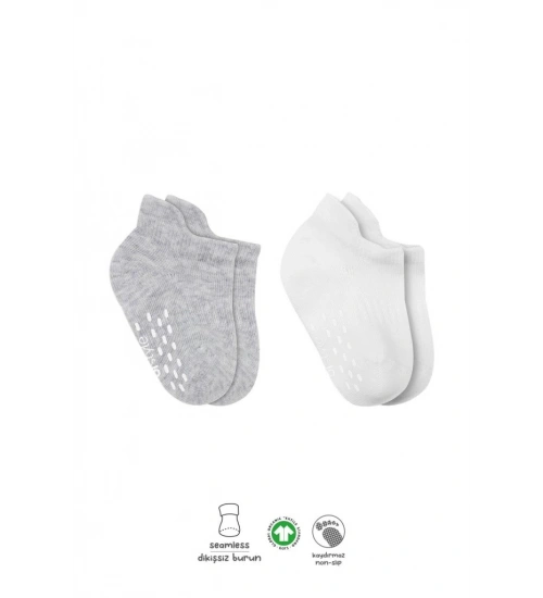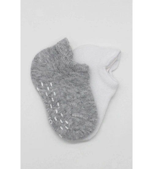 2'Li Sneakers Kaymaz Basic Penye Çorap 20103 Gri Beyaz
