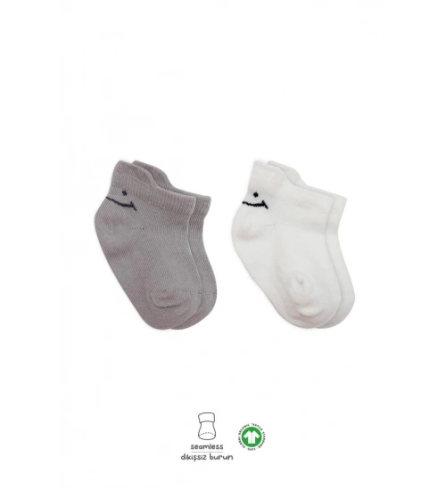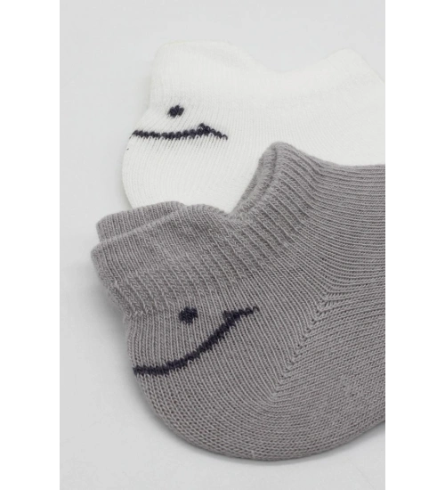 2'Li Sneakers Smile Penye Çorap 20106 Gri Ekru