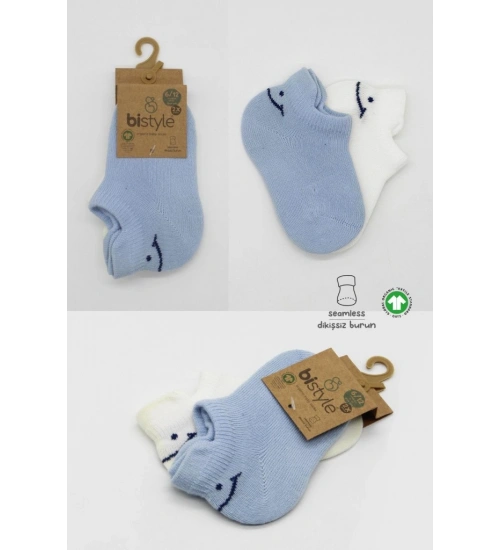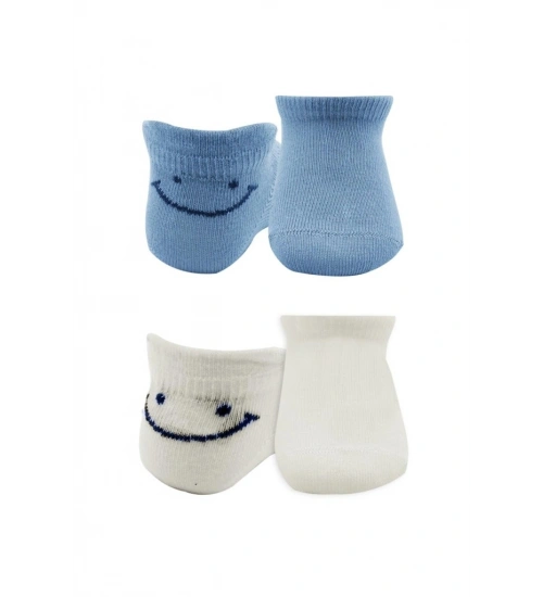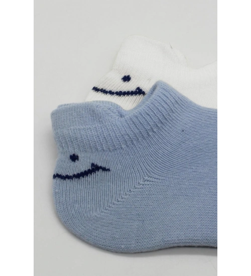 2'Li Sneakers Smile Penye Çorap 20106 Mavi Ekru