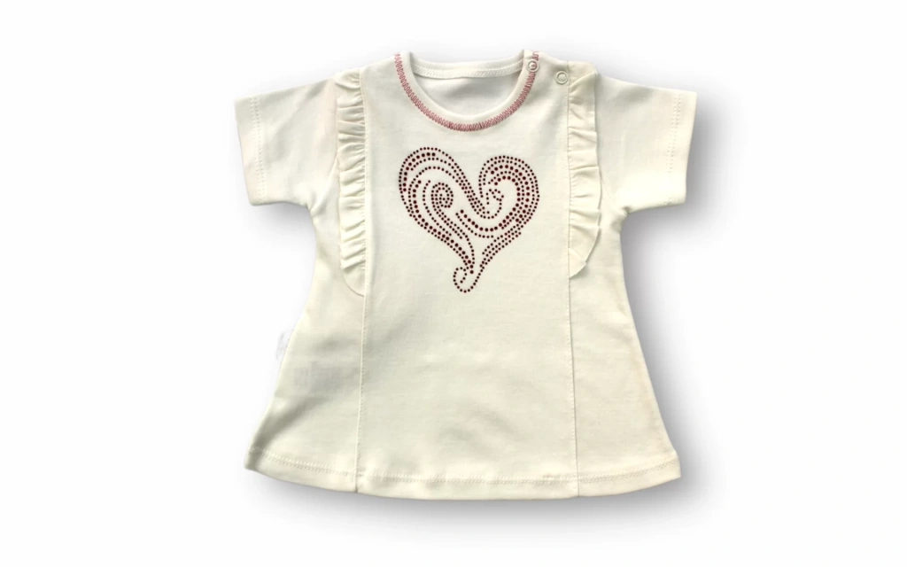 3-6 6-9 9-12 12-18 Ay Kalp Baskılı Uzun Kollu Sweatli 2li Kız Bebek Takımı Ekru