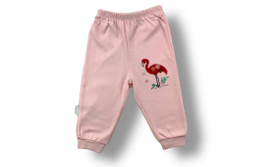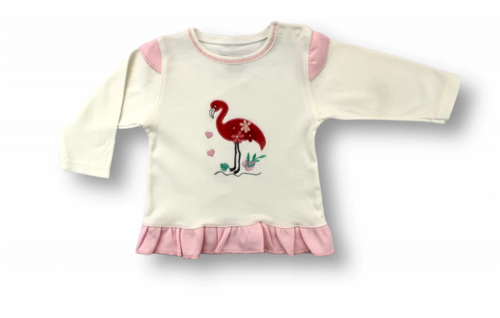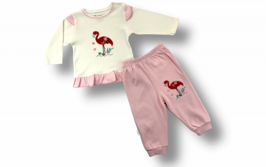 3-6 6-9 9-12 Ay Flamingo Nakışlı Uzun Kollu Sweatli 2li Kız Bebek Takımı Ekru