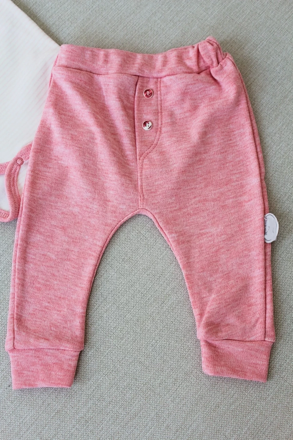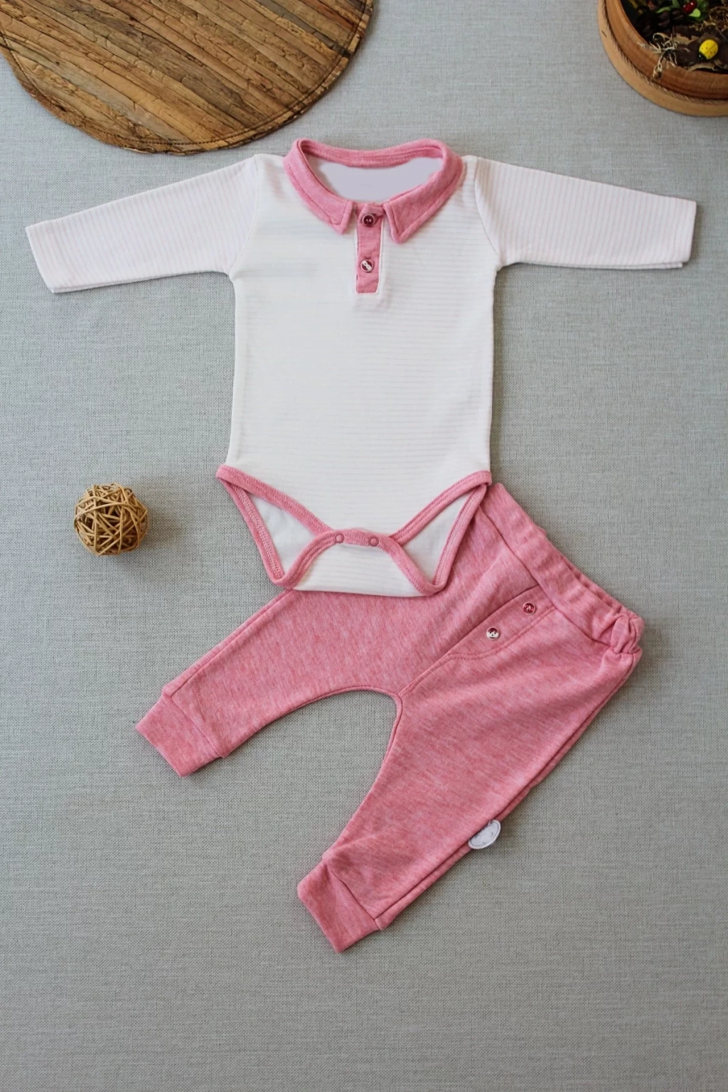 3-6 6-9 9-12 Ay Melanjlı Uzun Kollu Zıbınlı 2li Kız Bebek Takımı Pembe