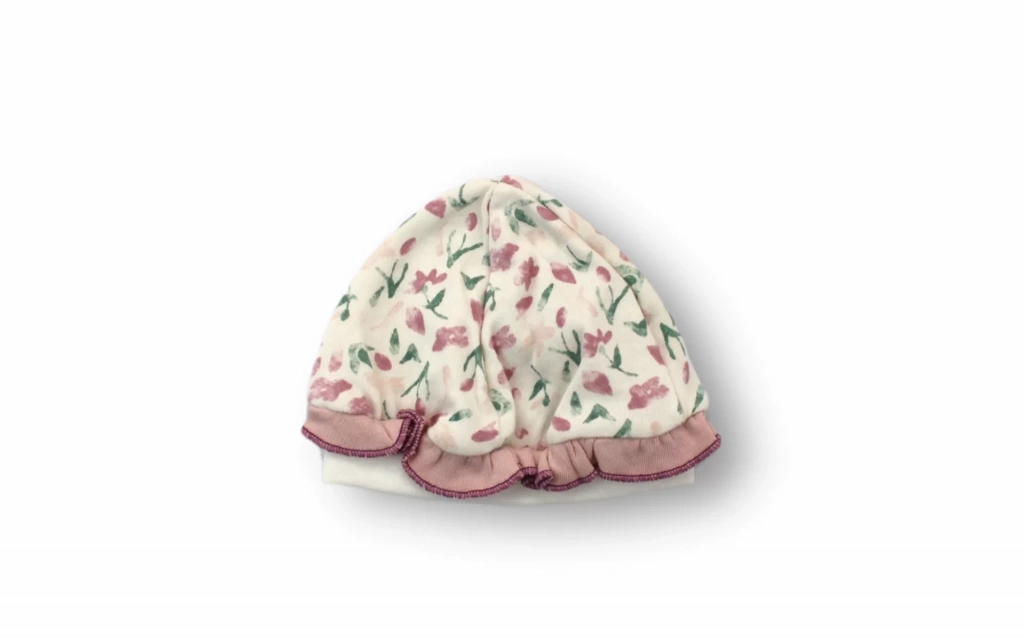 3-6 6-9 9-12 Ay Tb Çiçek Nakışlı Şapkalı Uzun Kollu Sweatli 3lü Kız Bebek Takımı Ekru