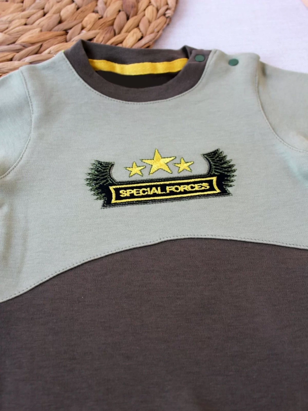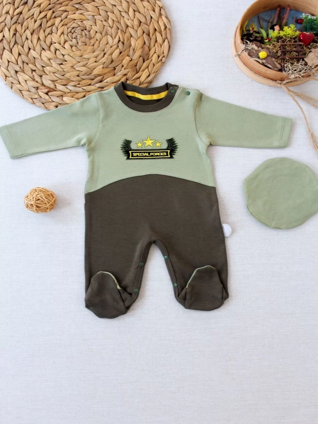 3-6 9-12 12-18 Ay Özel Kuvvetler Nakışlı Bere Şapkalı Kız Erkek Bebek Tulumu Yeşil