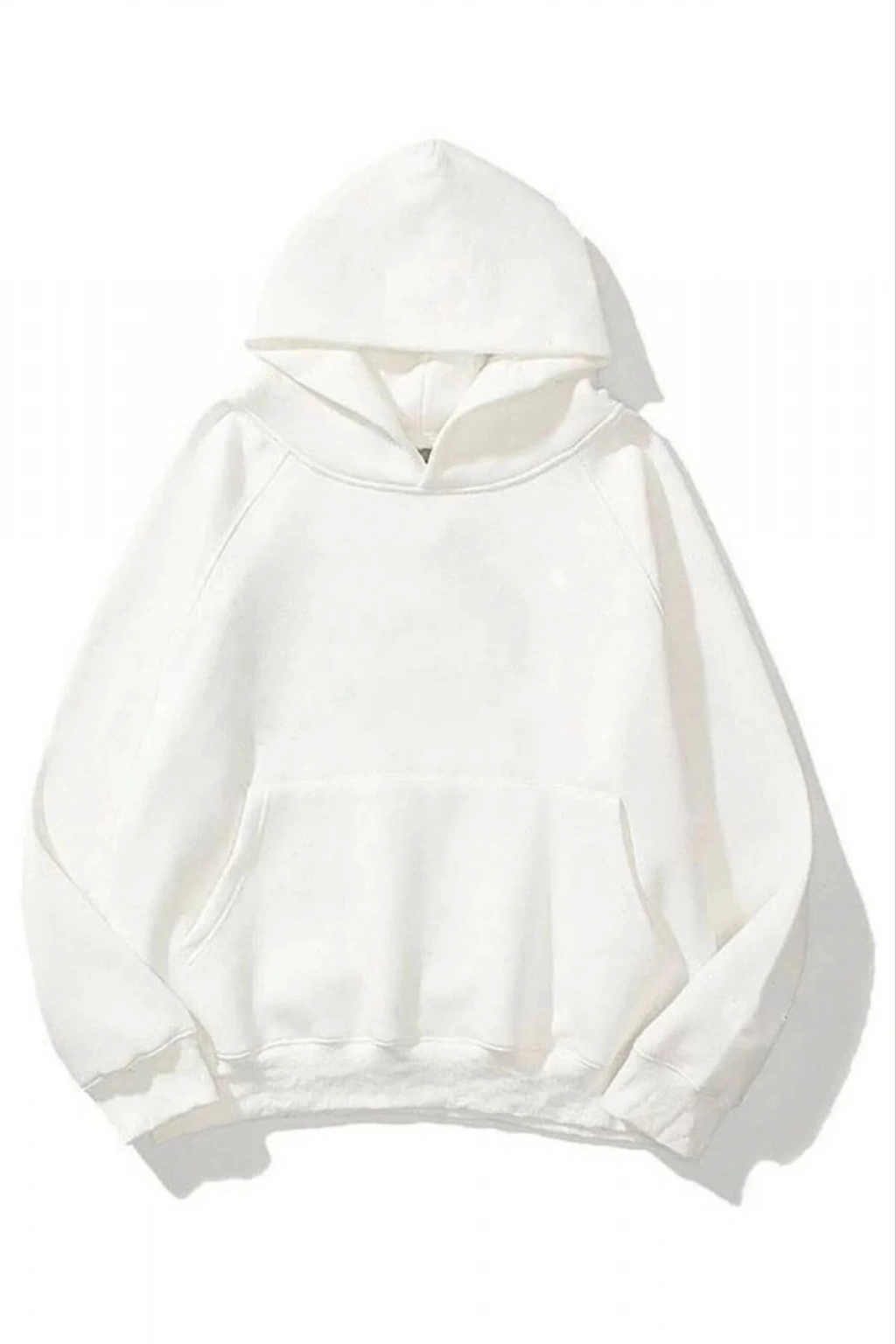 Kadın Üç İplik Kapüşonlu Kanguru Çepli SweatShirt hoodie - Beyaz