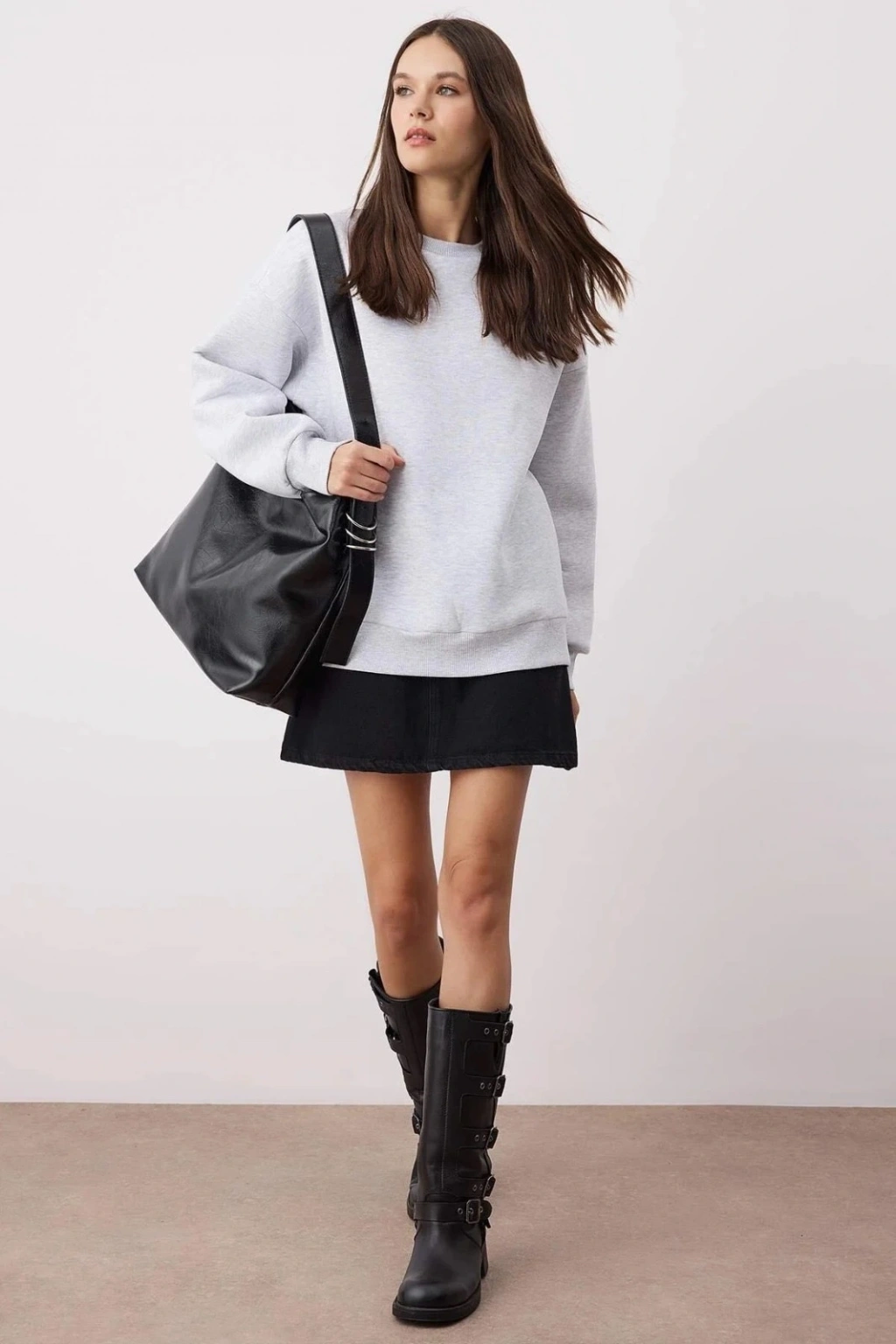 3 iplik Şardonlu yarım fermuarlı sweatshirt gri