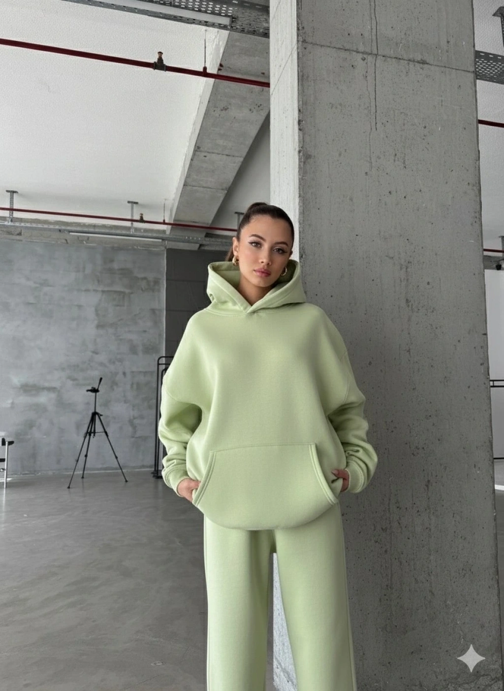 3 iplik şardonlu bisiklet yaka sweatshirt mint