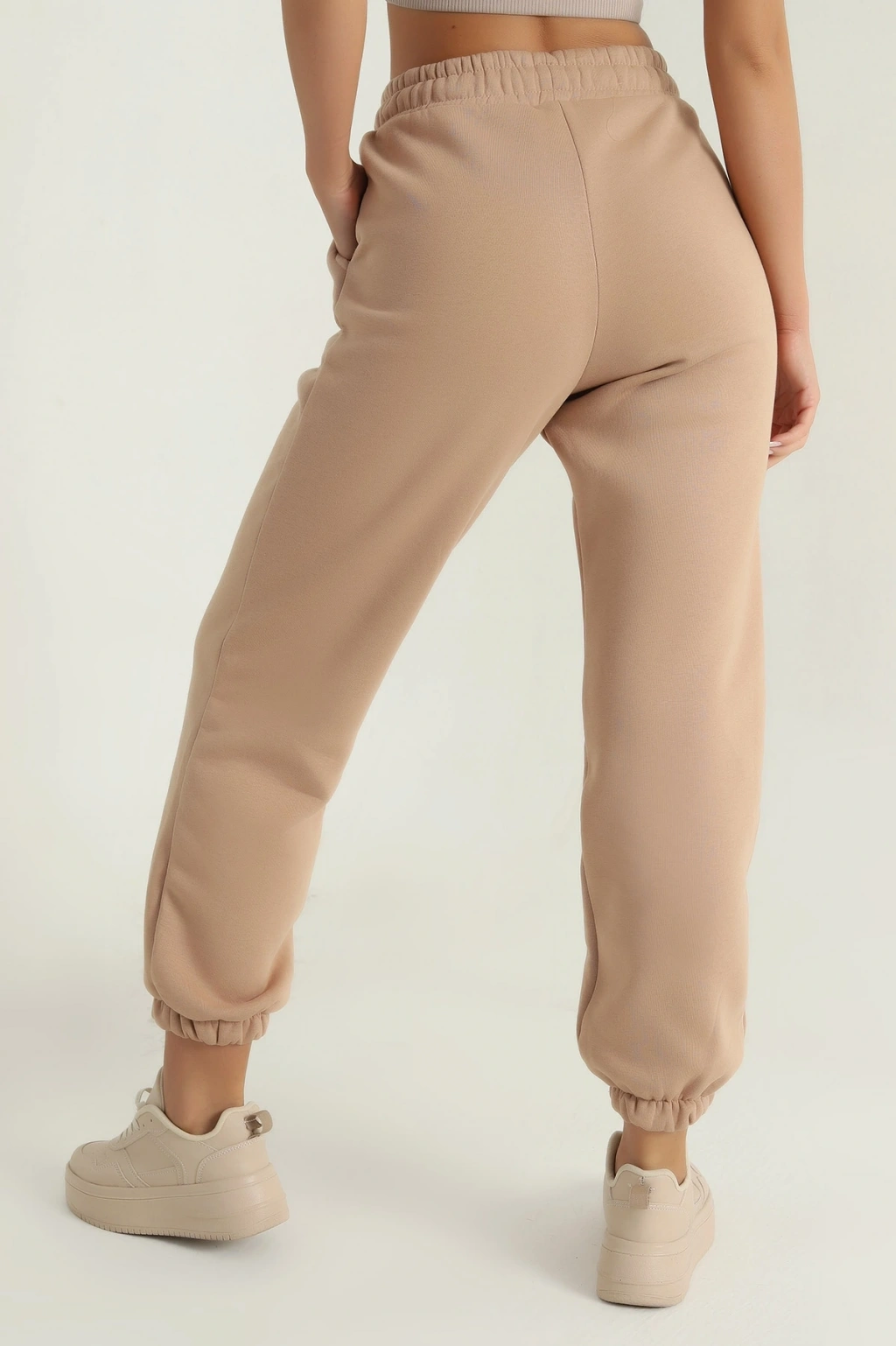 3 iplik şardonlu paça lastikli eşofman vizon is001