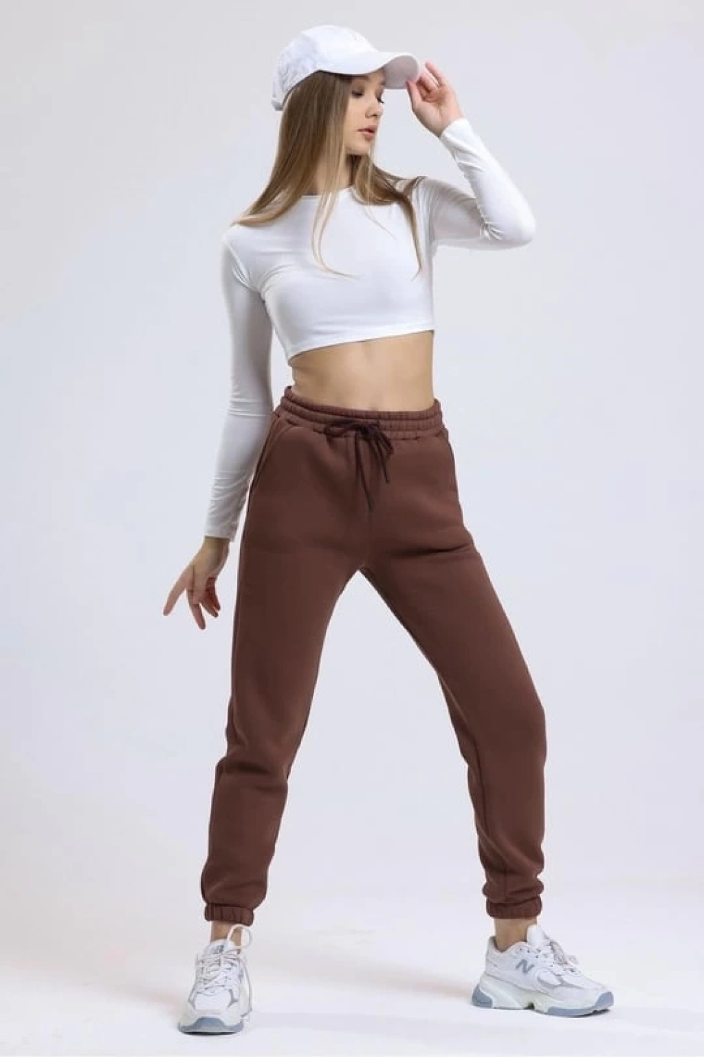 3 iplik şardonlu paça lastikli eşofman vizon is001