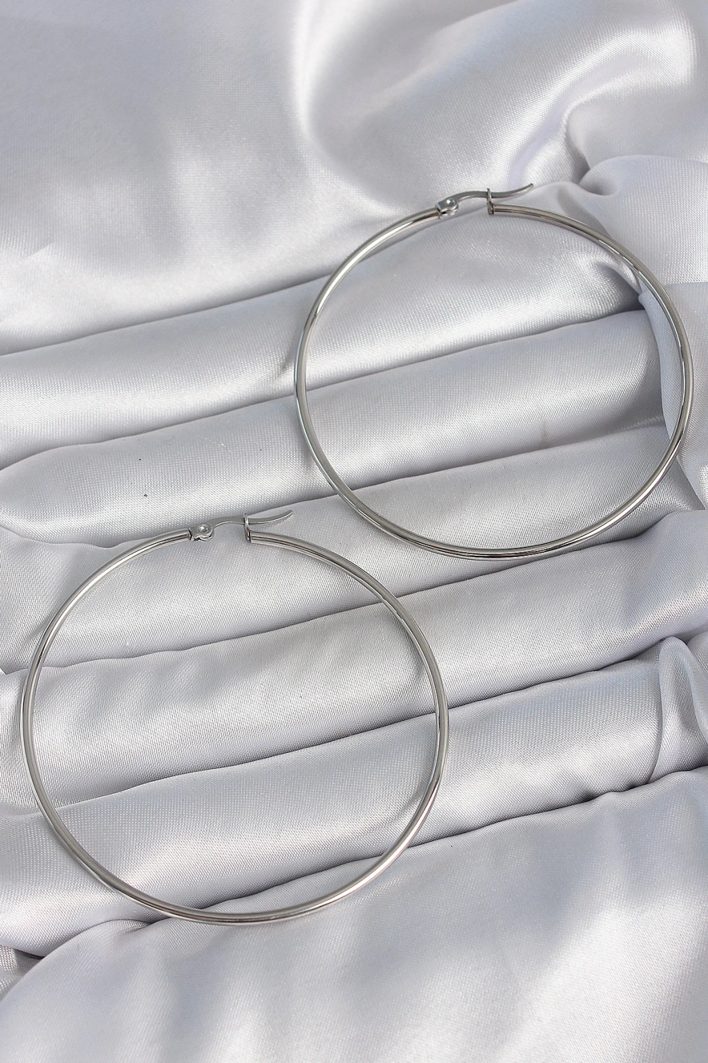 316 Çelik Gümüş Renk 63 Mm Halka Model Kadın Küpe