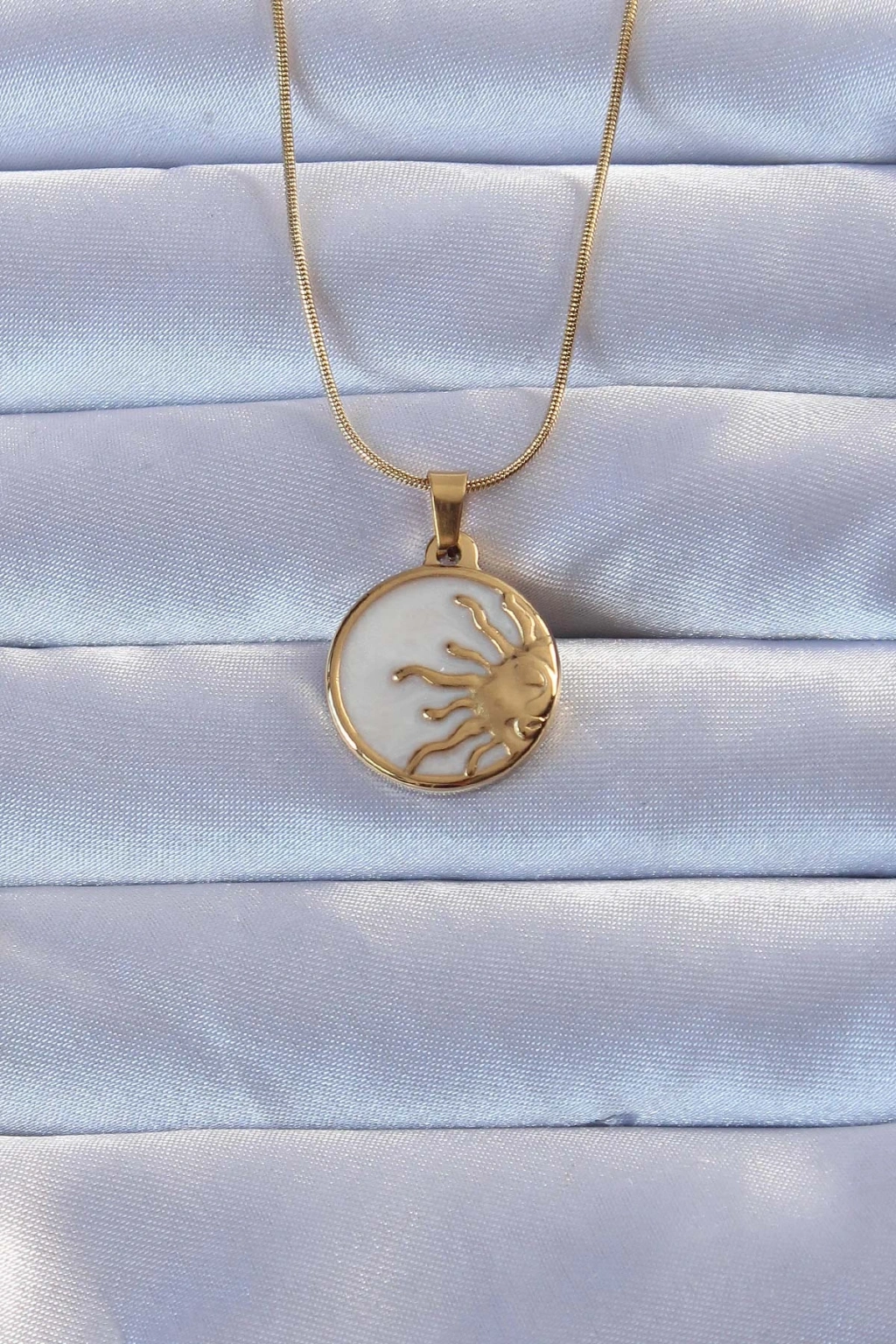 316l Altın Renk Mineli Parlayan Güneş Kolye