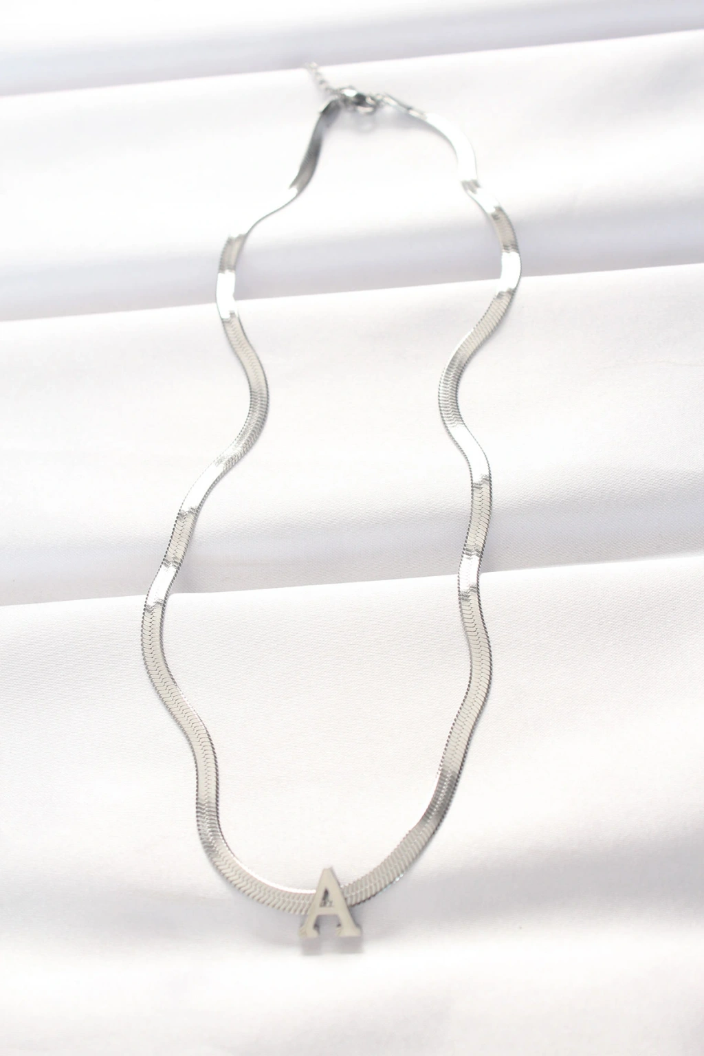 316l Çelik A Harfli Silver Renk İtalyan Zincirli Kolye