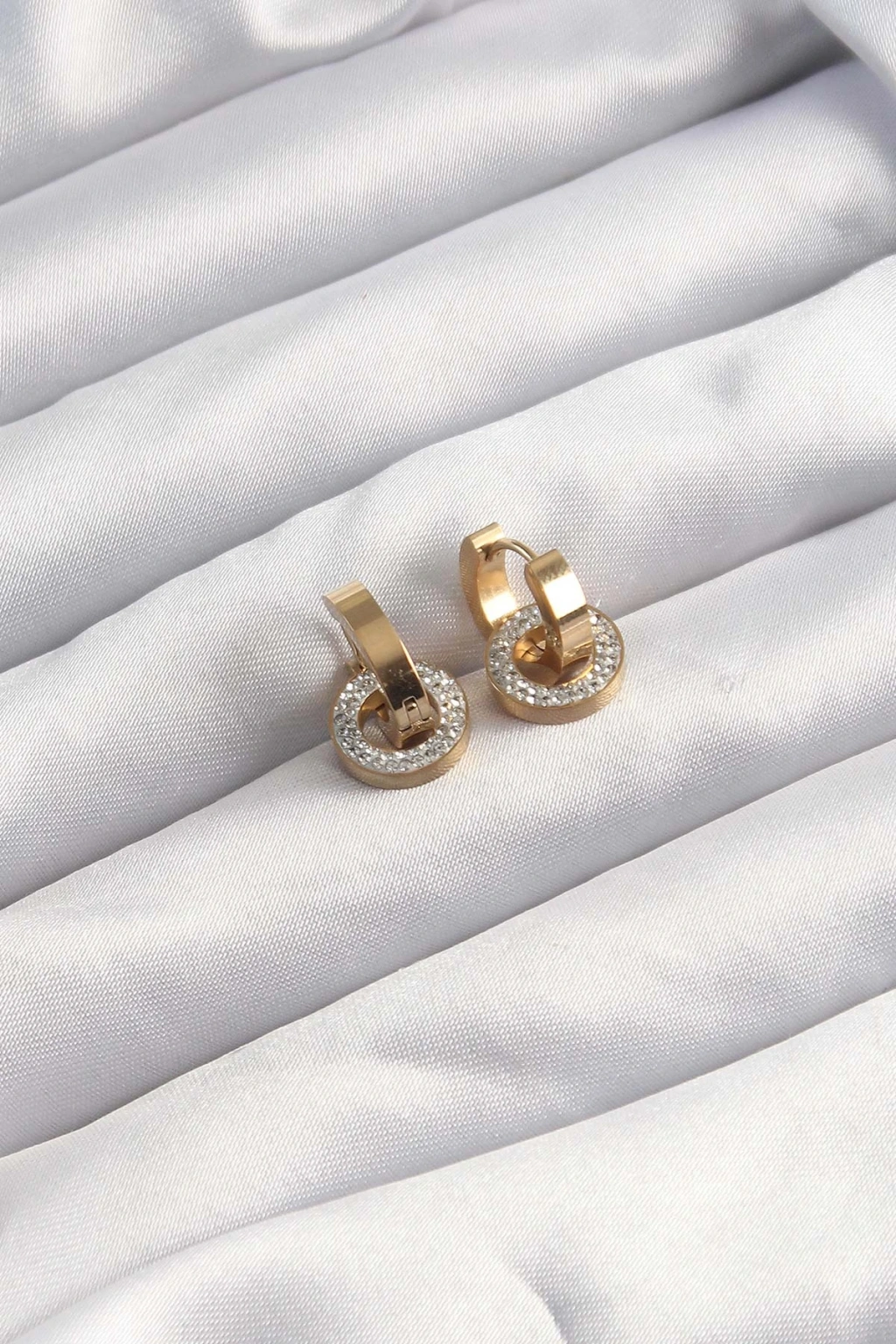 316l Çelik Altın Renk Zirkon Taşlı Halka Model Küpe