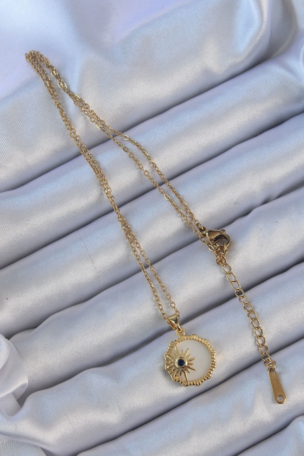 316l Çelik Altın Renk Zirkon Taşlı Mineli Kutup Yıldızı Kolye
